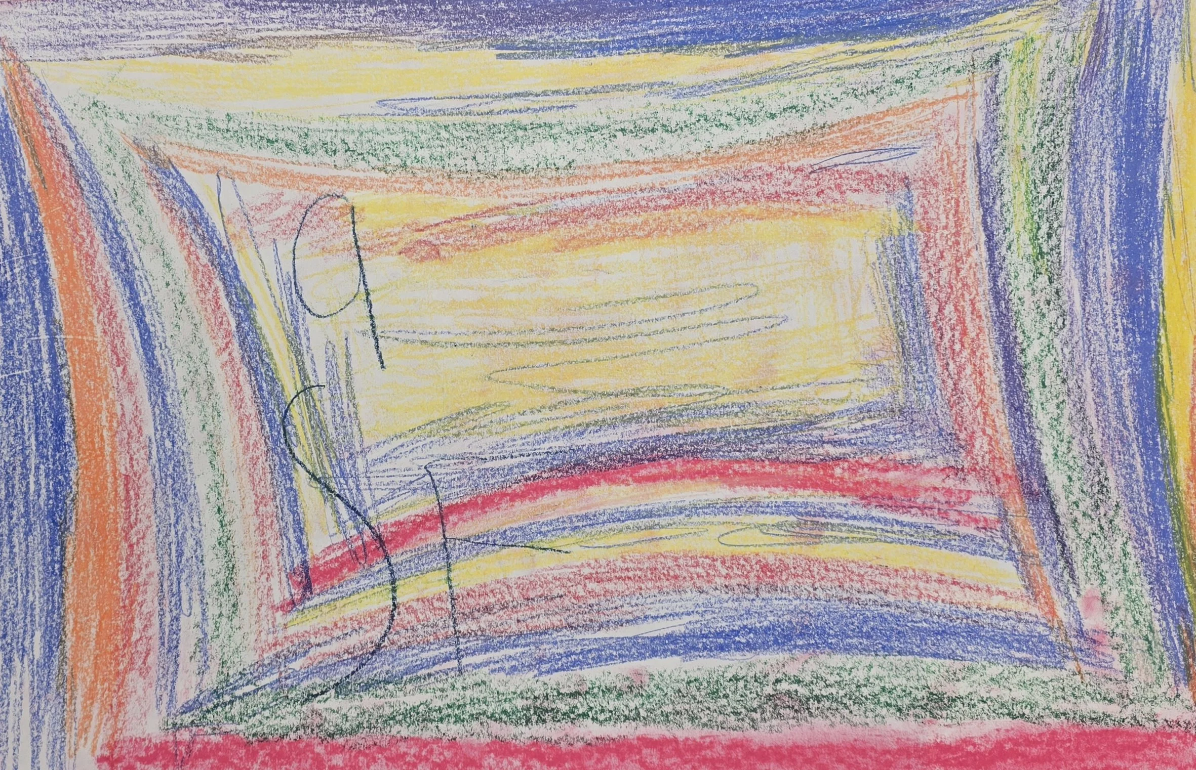 This colorful abstract art piece was created using color pencils on drawing paper. The final piece measures 12”x18” and comes unframed.